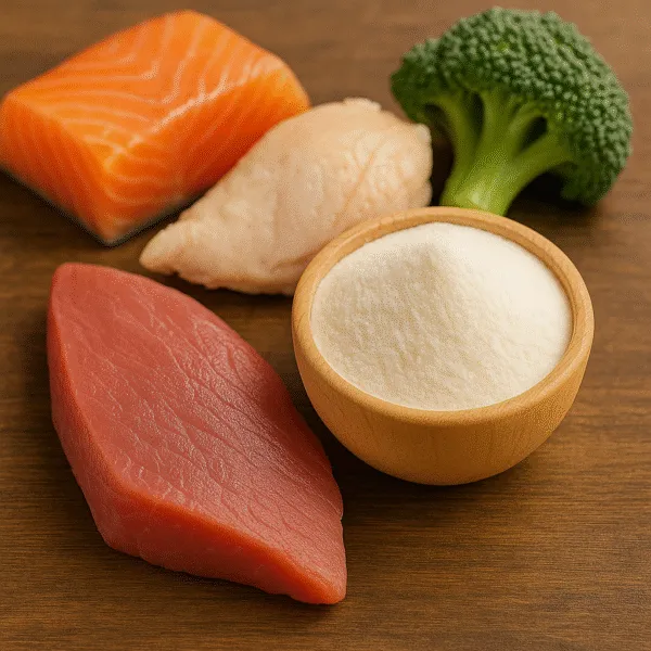 Proteína extraída de origem animal, rica em aminoácidos, naturalmente presente em tecidos conjuntivos.